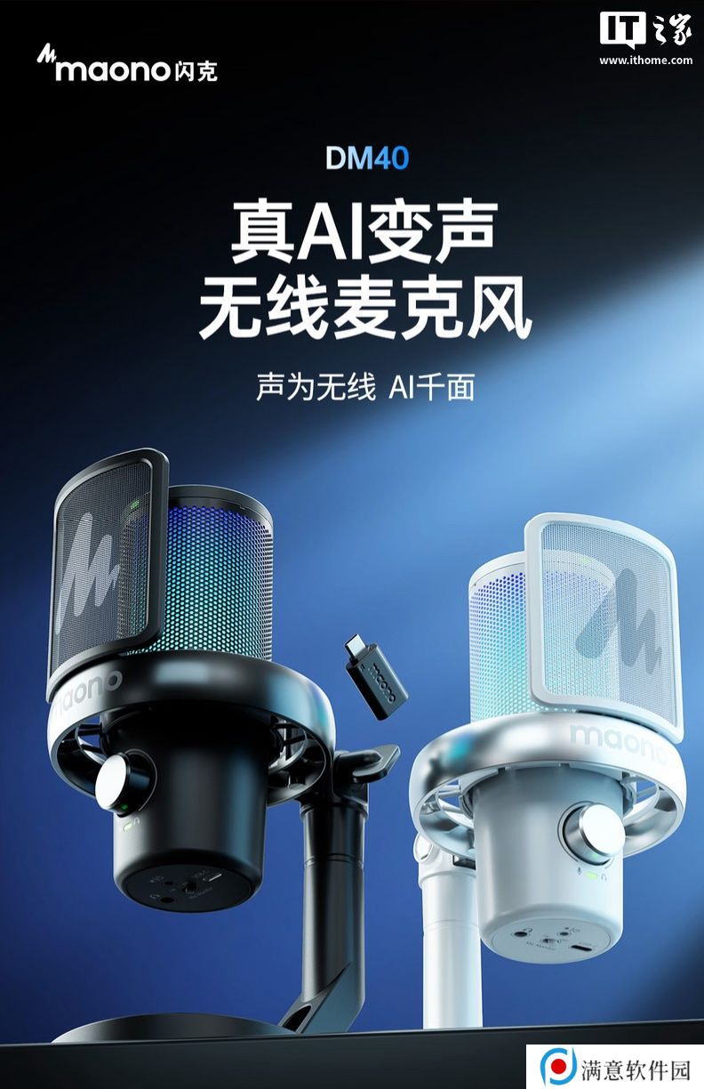 Maono 闪克推出 DM40 PRO 麦克风:AI 变声、双模连接,898 元